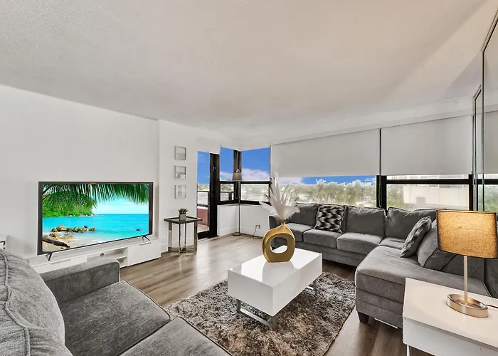 Featuring views of the sea, the 2-room Huge 2Bd Miami Beach With Beach Service -720 apartment is situated in the Mid-Beach district of Miami Beach, 2.8 km from Pine Tree Park. This spacious apartment boasts a sun terrace and a private parking lot on site.